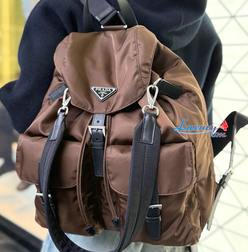 [스페셜오더]PRADA-2VZ110 프라다 흑갈색 리나일론 백팩(패브릭 스트랩)
