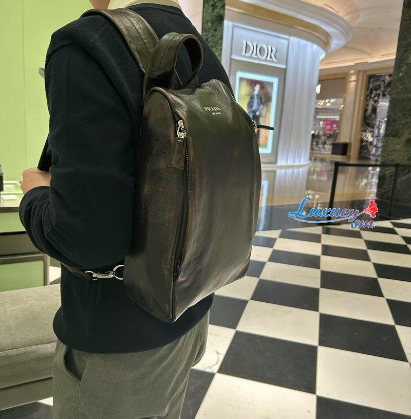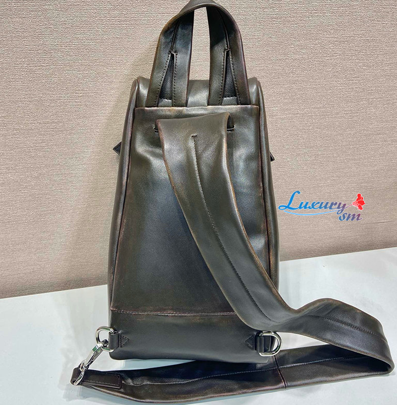[스페셜오더]PRADA-2VZ114 프라다 빈티지 이펙트 나파 가죽 원숄더 백팩/힙색 다크브라운
