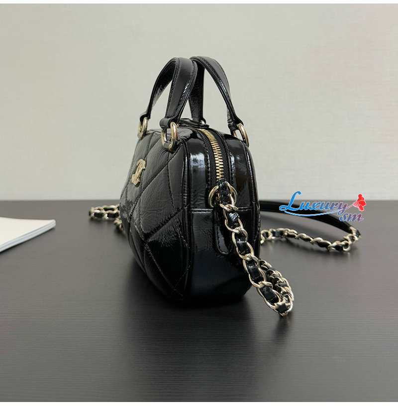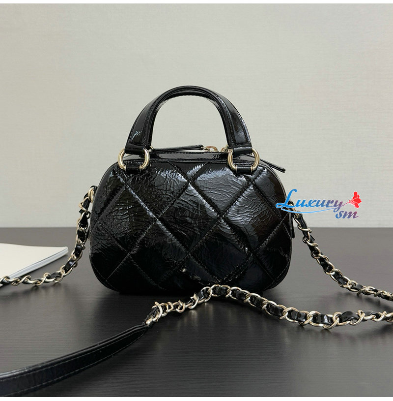 샤넬 미니 볼링백 샤이니 크럼플드 카프스킨 블랙