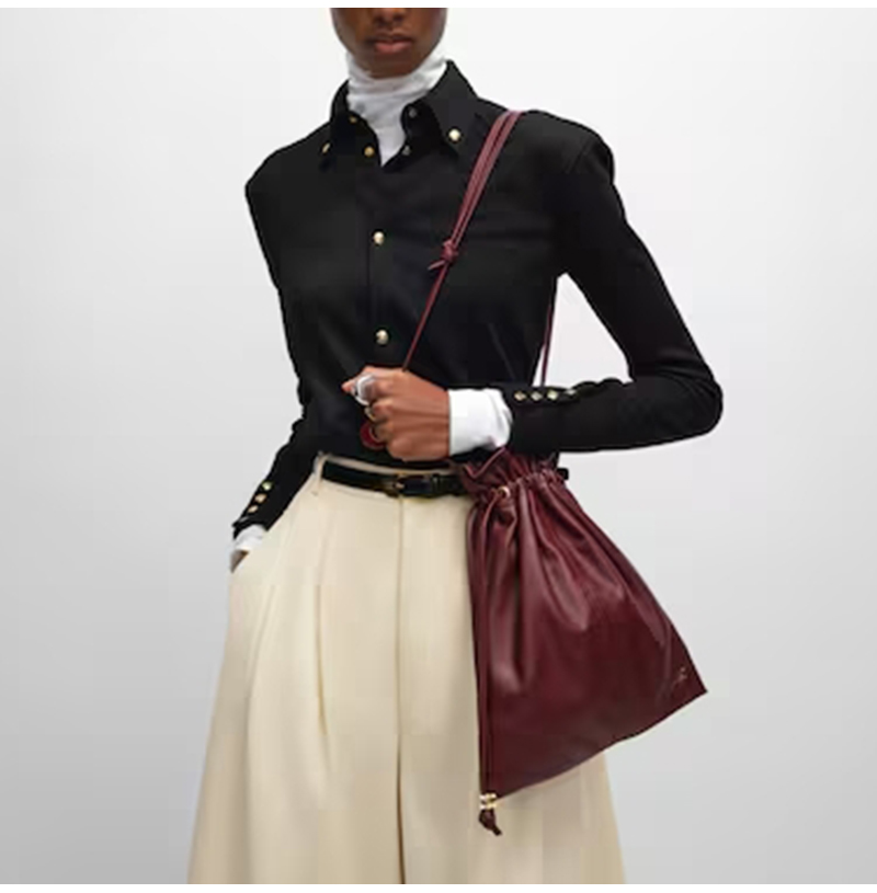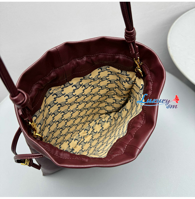 높은 식별도를 자랑합니다. 드로스트링 버킷백 디자인으로