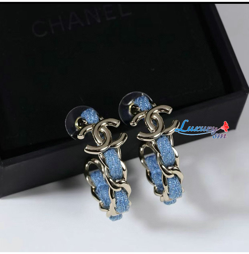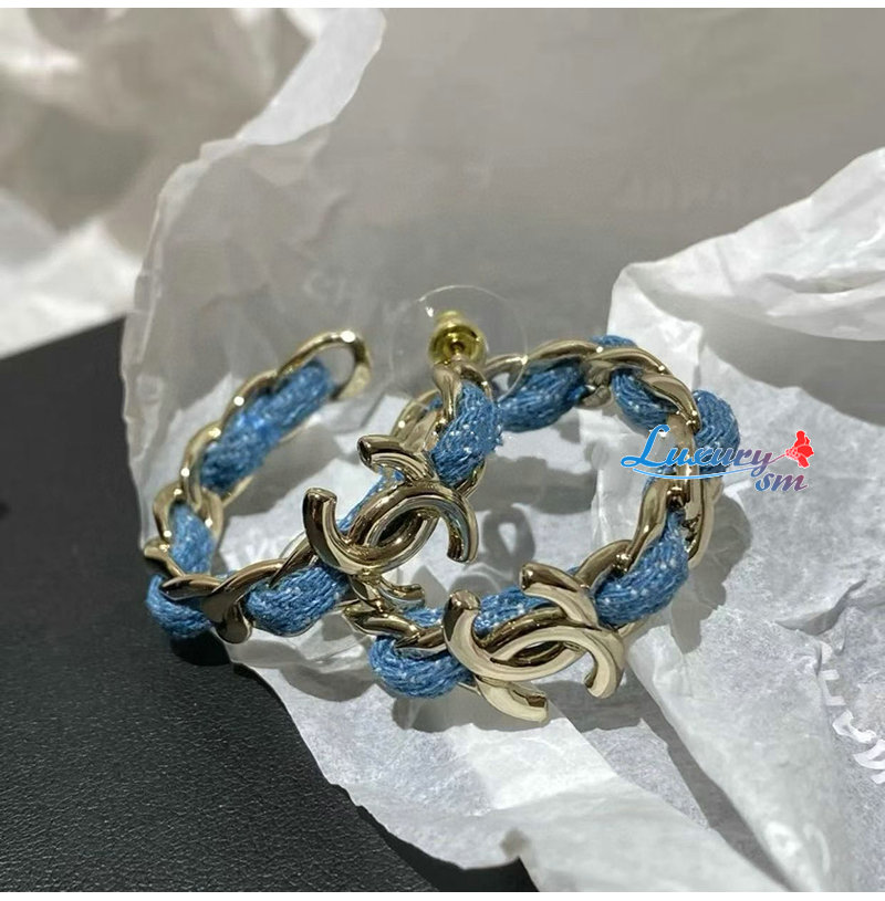 이어링 본체는 데님 소재에 메탈 체인과 더블 C 로고