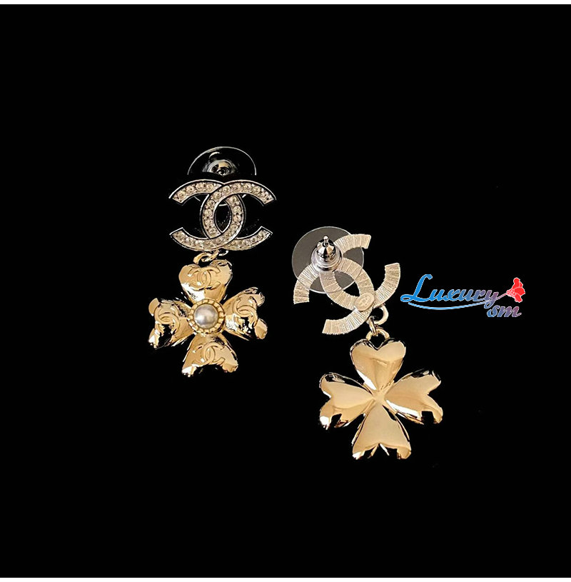 CHANEL-7619 샤넬 더블 C 풀 다이아몬드 펜던트 클로버 귀걸이