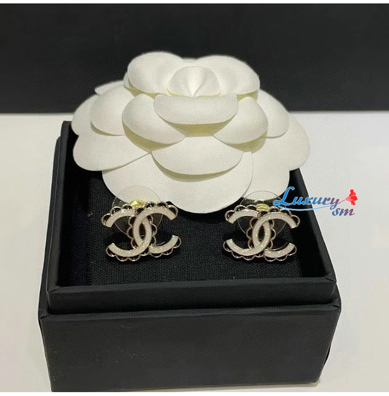 CHANEL-7529 샤넬 블랙 앤 화이트 레이스 더블 C 귀걸이